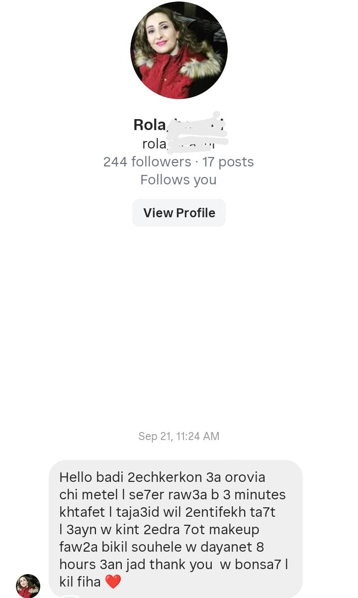 Hello badi 2echkerkon 3a orovia chi metel l se7er raw3a b 3 minutes khtafet l taja3id wil 2entifekh ta7t l 3ayn w kint 2edra 7ot makeup faw2a bikil souhele w dayanet 8 hours 3an jad thank you w bonsa7 l kil fiha
