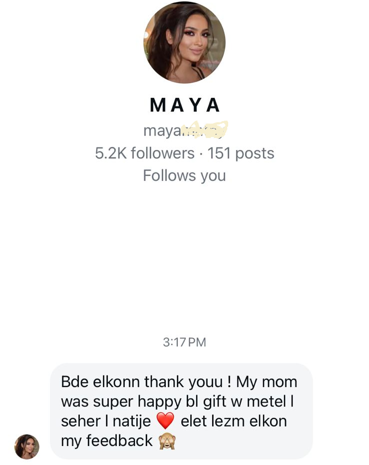 Bde elkon thank youu ! My mom was super happy bl gift w metel l seher l natije elet lezm elkon my feedback